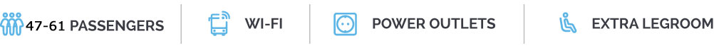 Reclining seats with foot rests for 47-61 Passengers